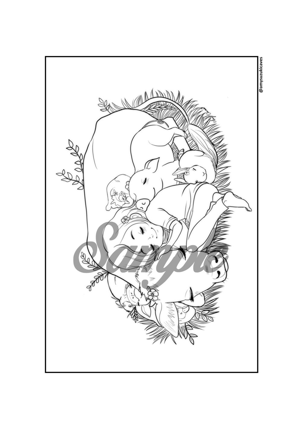 All rights reserved by Amy Caves (Aoi Kotori). This file can't be used for any commercial purposes. For personal use only. Digital prints can be printed as many times as you wish. Print can be used as a gift for a friend or relative. Can not be resold or used commercially even if colored. All rights to the content are owned by Amy Caves. colored on social media, please tag me @amysuzukicaves so I can see your beautiful work! Thank you and ENJOY!